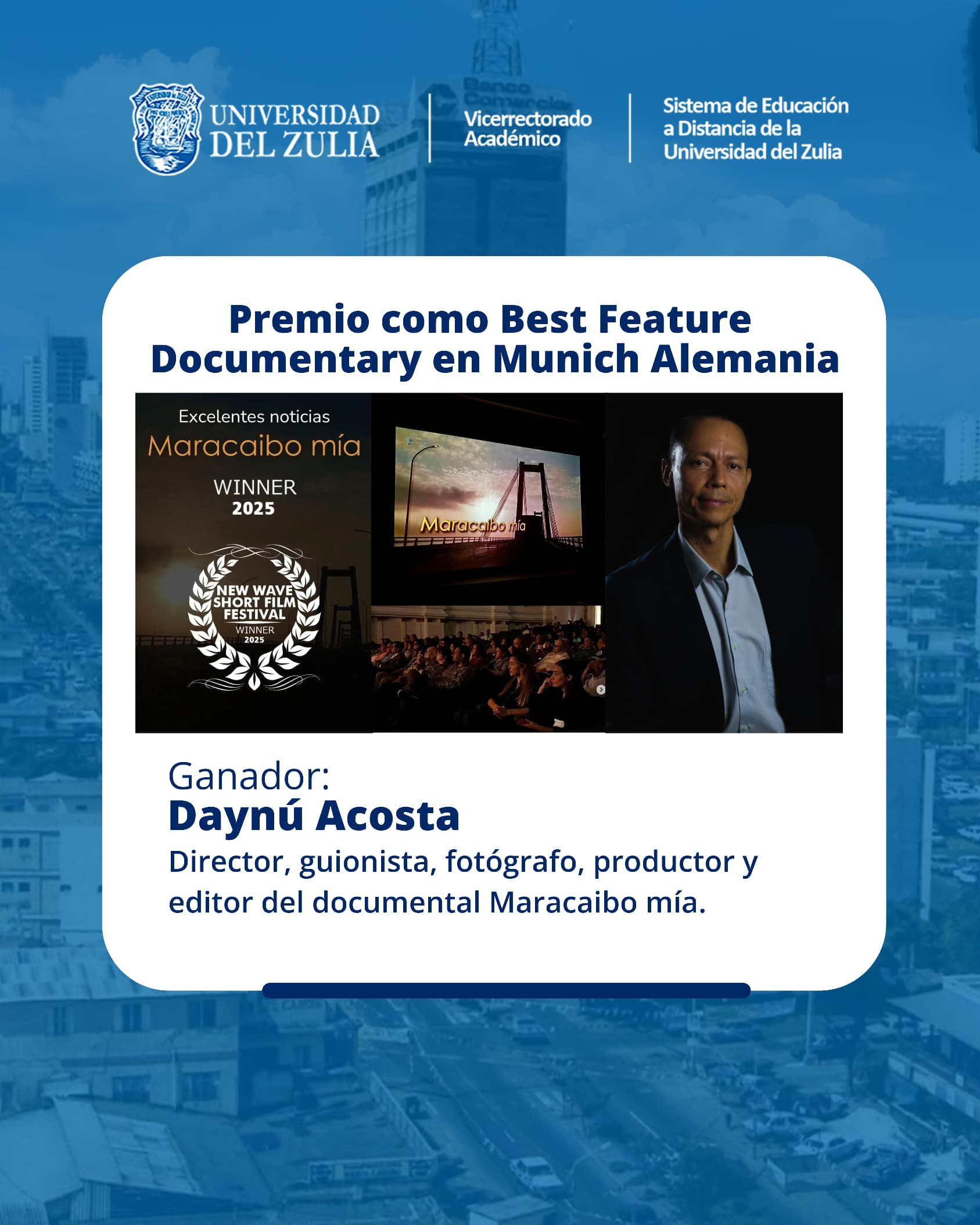 Trabajador del Sedluz ganó premio a mejor documental internacional en el New Wave Short Film de Munich, Alemania 2025 por su largometraje «Maracaibo Mía»
