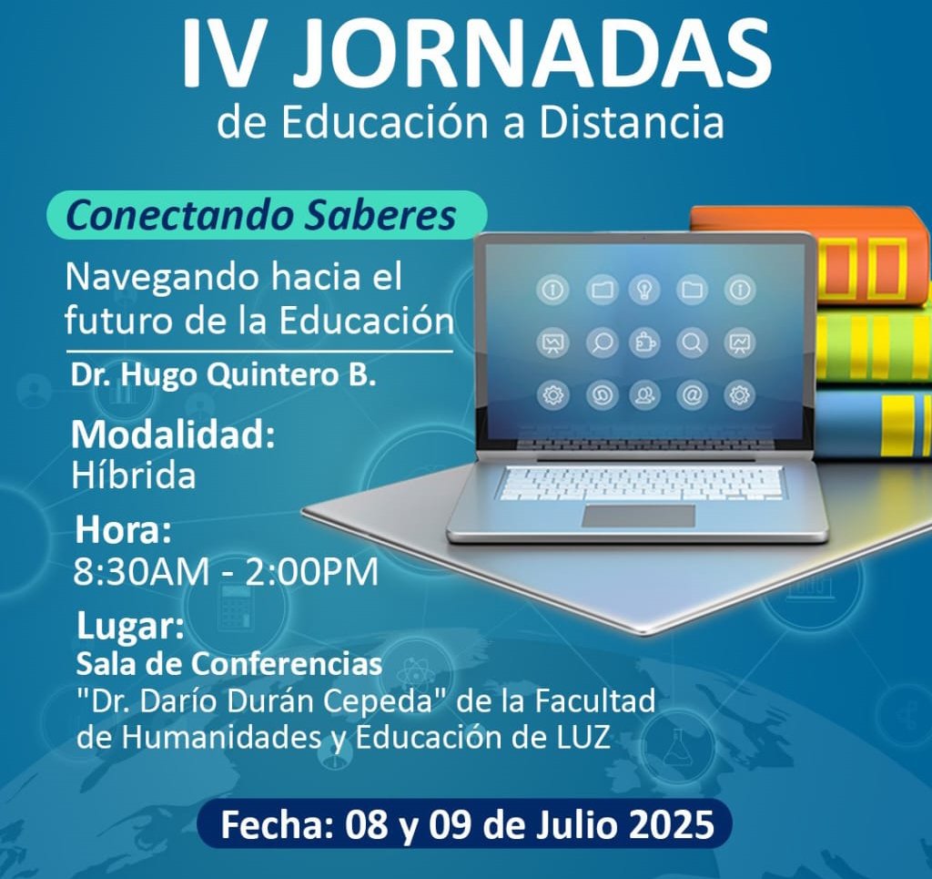 Para el Sistema de Educación a Distancia de la Universidad del Zulia (SedLUZ) es un inmenso placer invitar a toda la comunidad universitaria y público en general a participar en las IV Jornadas de Educación a Distancia: “Conectando Saberes. Navegando hacia el futuro de la Educación Dr. Hugo Quintero...