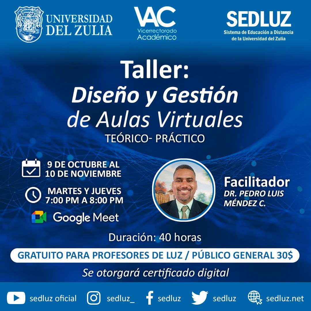 Leer NoticiaEl Sistema de Educación a Distancia de la Universidad del Zulia (Sedluz) inició este sábado 03 de febrero el proceso de inscripción para el Taller online "Diseño y Gestión de Aulas Virtuales", dirigido a profesores de LUZ y al público en general, donde se les brindarán las herramientas y los conocim...